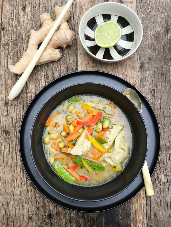 In einem großen Topf 1 EL Bratlust erhitzen. Das Zitronengras leicht andrücken, in fünf Stücke schneiden und zusammen mit dem in dünne Scheiben geschnittenen Ingwer etwa 2 Minuten anbraten. Anschließend die Gemüsebrühe, Kokosmilch, Orient Spice und Teriyaki Soße hinzufügen und alles zum Kochen bringen. Das TK-Wokgemüse in den Topf geben und 3 Minuten köcheln lassen, dann die Edamame dazugeben und weitere 2 Minuten garen. Zum Schluss die Gyoza einlegen und alles noch etwa 5 Minuten sanft köcheln lassen, bis das Gemüse aufgetaut und die Gyoza vollständig durchgewärmt sind. Zum Servieren in Teller oder Schüsseln füllen und mit Limettensaft abschmecken.